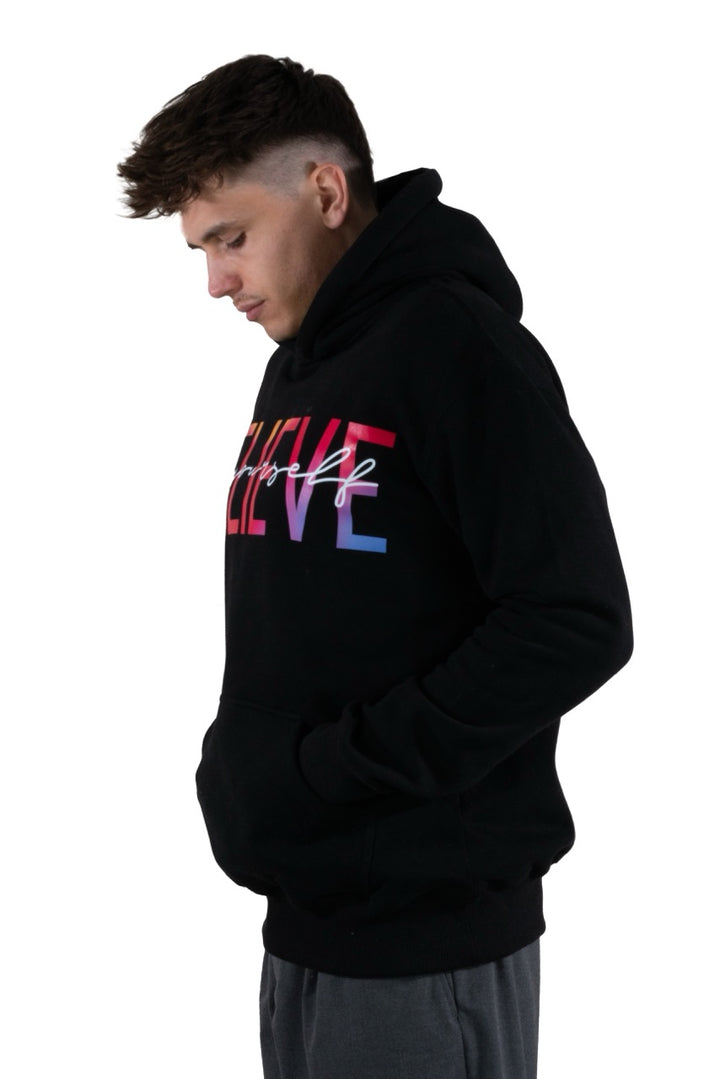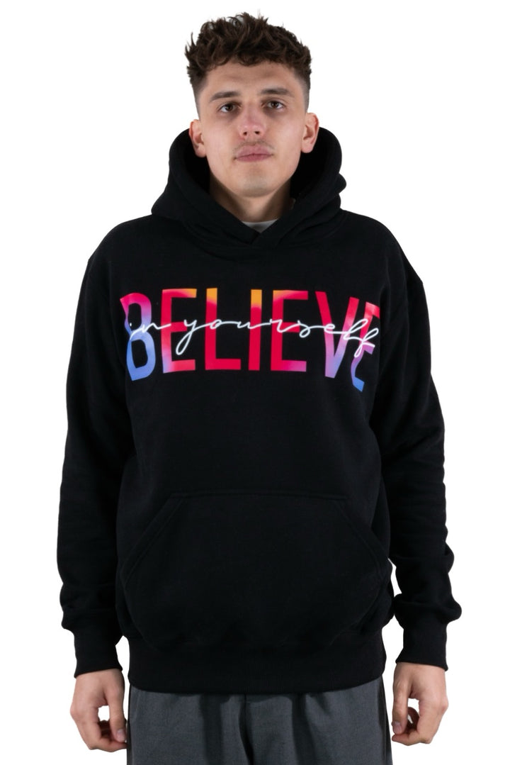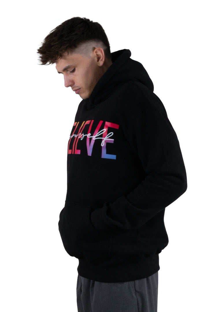Believe Hoodie Schwarz mit Buntem Druck – Dein Statement-Piece für jeden Tag