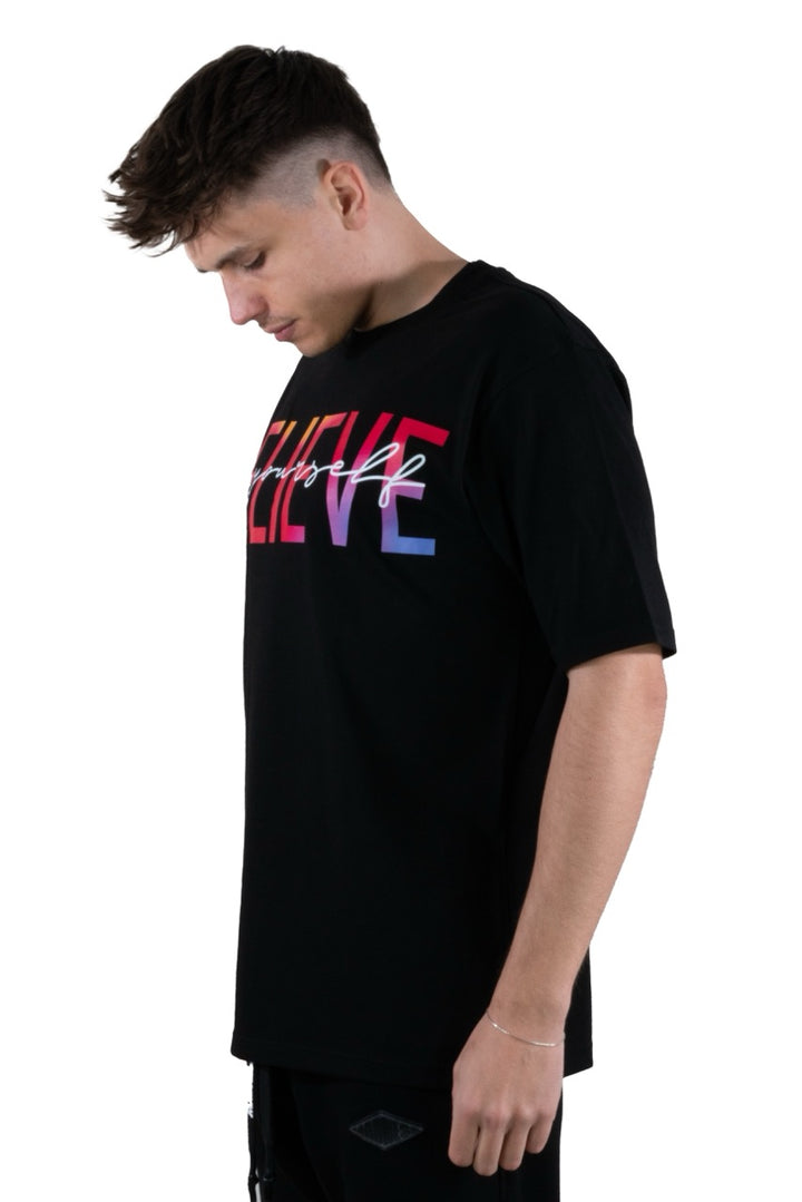 Believe Shirt Schwarz mit Buntem Druck – Dein modischer Motivationskick