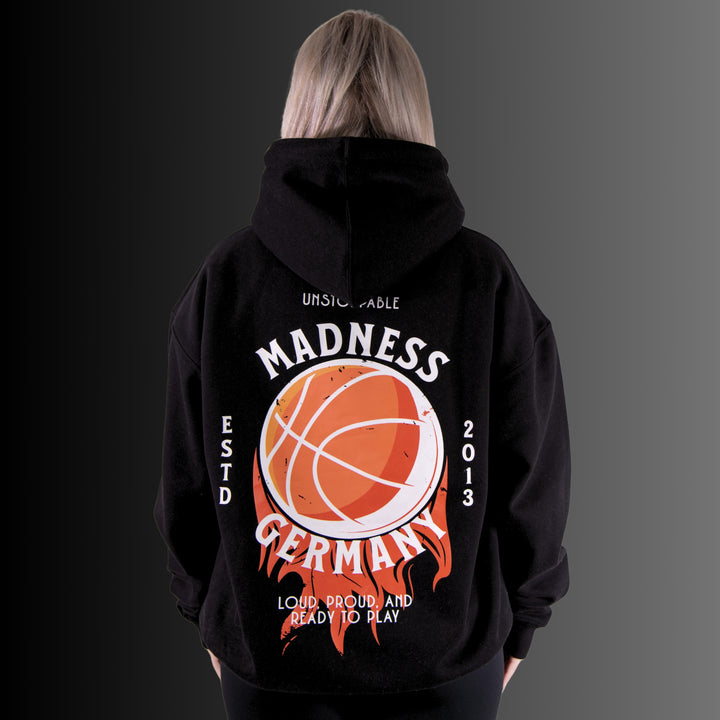 Jetzt bestellen und den sportlichen Komfort des Boston Oversized Hoodies mit Basketball Design erleben!